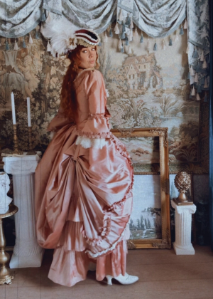 The Mina Skirt is part of a set with the matching stays corset top. This stunning blood red taffeta inspired the look and so we named the set for Dracula’s lover, Mina Harker. This historical-inspired skirt design features a ruched ruffle trim for a regal Rococo look, along with front and back buttons to bustle the skirt in your preferred style, as well as pockets! This skirt is 2″ longer than the previous Rococo Skirts and with a taller frill for a more dramatic look. The gorgeous high quality taffeta fabric perfectly holds structure for a relaxed historical shape or a more dramatic voluminous silhouette while remaining soft and flowy. Imagine yourself walking up and down the chateau halls in this beauty! You can wear this skirt layered with a chemise under for a historical look, or by itself for a bit more of a courtesan look. Perfect for mix-n-matching!