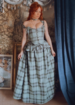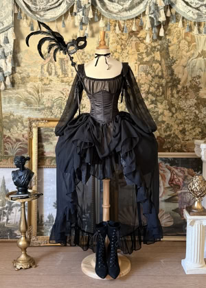 The Coral Skirt is made to match the Coral Stays Corset & Coral Crop Top, but pairs perfectly with any corset. Featuring a double drawstring front to adjust the length and tiered ruffles, our small batch dyed rayon fabric mimics the texture of historical cotton while remaining extremely soft and breezy- perfect for spring-fall. Style it Cottagecore, pirate, hobbit, ren faire, etc! This skirt perfectly completes your corset outfit and adds a touch of sultriness with the high-low hem. Length 40 inches, elastic waist in the back.